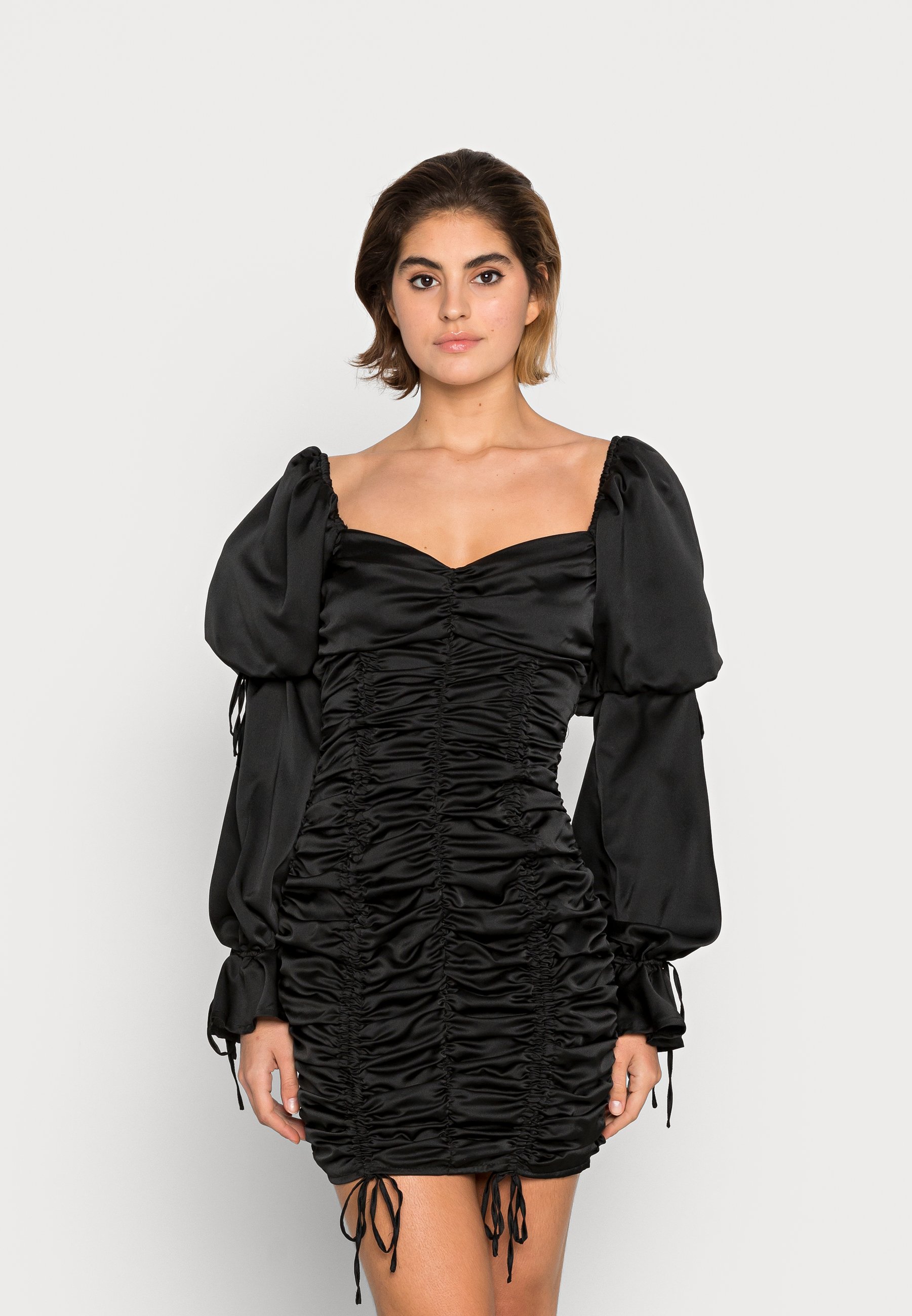 Missguided Ruched Puff Sleeve Mini Dress Cocktail Dress Party Dress Black Zalando De